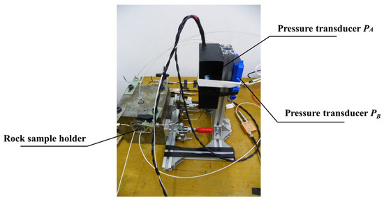 Figure 2. The dual pressure sensor method uses two pressure sensors to measure the electroosmotic pressure and the background noise separately, and then the data acquisition card is used for analog/digital conversion, and finally, the electroosmotic pressure and its error estimation are obtained by weighted difference, spline fitting and fast Fourier transform. The lab measures at room temperature. The lateral side of the sample is sealed by rubber under about 1.2 MPa in a rock sample holder, and two ends of the sample link to two input ports of the pressure transducer