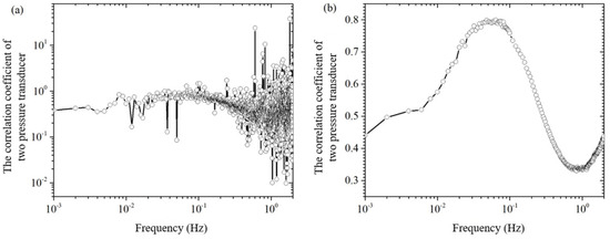 of the background noise of the two pressure sensors is not a constant: in the middle of the frequency band from 0.01 Hz to 0.2 Hz, the difference in the background noise is relatively small, and from the formula, it can be seen that the conversion coefficient a is larger at this time; at the two ends of the frequency bands from 0.001 Hz to 0.01 Hz and from 0.2 Hz to 2 Hz, the difference of the background noise is relatively larger, at this time the conversion coefficient