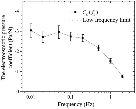 19]. As can be seen from Equation (15), the electroosmotic pressure obtained by the single pressure sensor method is the measured value of the pressure sensor. Therefore, the solid line in