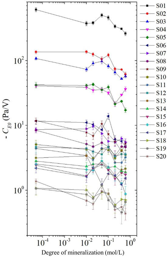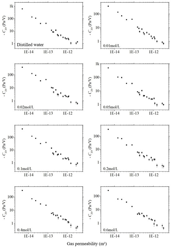 15]. The gases produced by electrolysis, as well as changes in the pH and conductivity of the solution change the value of the electroosmotic pressure coefficient. For experiments on rock samples saturated with highly mineralized solutions, excessive excitation currents (>5 mA/cm