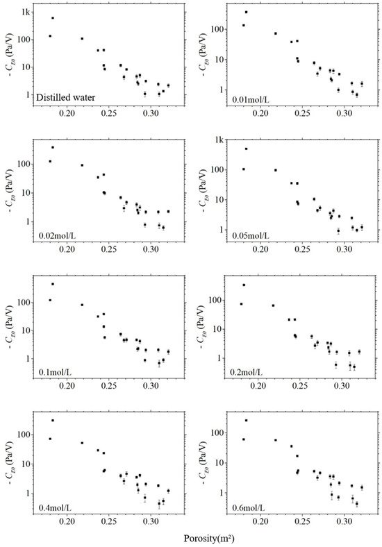 From Equation (1) the electroosmotic seepage is zero when there is no excitation voltage at both ends of the rock sample, i.e.,
