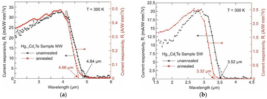 Figure 3 shows the normalized spectral responsivities of photoconductors fabricated from the as-grown and annealed HgCdTe layers. The annealing results in two important changes as follows: