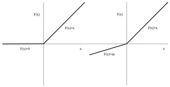 As shown in Figure 6, the ReLU function outputs zero continuously for negative inputs whereas PReLU allows the introduction of learnable parameters for negative inputs, enabling the output to be non-zero. As shown in Equation (11), a small slope is introduced in the negative input interval, the problem of gradient disappearance caused by negative numbers is alleviated and the problem of neurons not learning due to negative numbers is prevented. The difference between LReLU and PReLU resides in the fact that the slope of LReLU requires manual setting, while the slope of PReLU serves as a learned parameter and does not require manual setting.