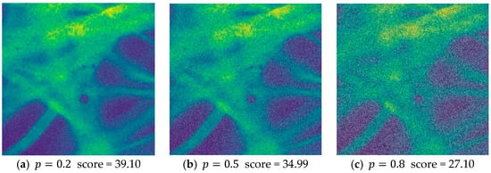 33. Quan, Y.; Chen, M.; Pang, T.; Ji, H. Self2self with dropout: Learning self-supervised denoising from single image. In Proceedings of the 2020 IEEE/CVF Conference on Computer Vision and Pattern Recognition (CVPR), Seattle, WA, USA, 13–19 June 2020. [Google Scholar]