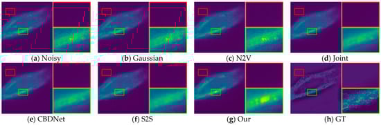 10. Broaddus, C.; Krull, A.; Weigert, M.; Schmidt, U.; Myers, G. Removing structured noise with self-supervised blind-spot networks. In Proceedings of the 2020 IEEE 17th International Symposium on Biomedical Imaging (ISBI), Iowa City, IA, USA, 3–7 April 2020; pp. 159–163. [Google Scholar]