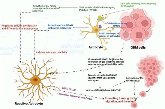 | Paracrine interactions | Exchange of BDNF and NLGN3-mediated signals, regulation of BDNF expression by miRNAs, promotion of glioblastoma growth and survival. |