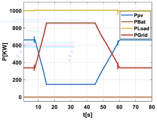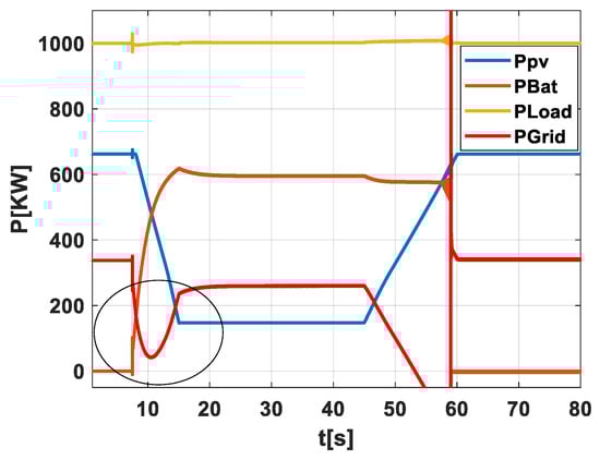 The red line in the figure illustrates the grid power changes in response to the PV power fluctuations. This line is indicative of the grid’s adaptability and responsiveness, key attributes in maintaining stability in the face of variable renewable energy sources.
