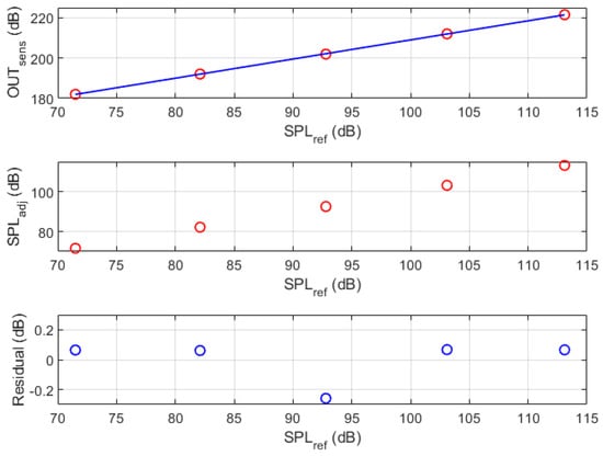 The sensitivity was obtained from the comparison of the SPL measured by the NTI microphone and the MEMS microphone when the source was emitting the broadband white noise at 55 dB, 65 dB, 75 dB, 85 dB, and 95 dB.