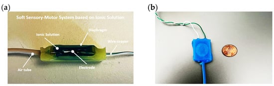 To achieve a soft sensory-motor system with the characteristics of expansion and compression, ionic soft sensors were investigated. Several ionic soft sensors have been developed [10,11,12]. Recent research has shown that ionic resistance ionic results in easy fabrication and good performance.