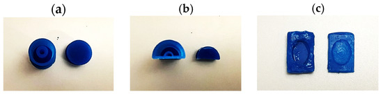 Elastomer parts for each SSMS-IS design: (a) toroidal; (b) semi-toroidal; and (c) rectangular. The diaphragm’s thickness for each SSMS-IS was 1 mm to guarantee less resistance during mechanical expansion.