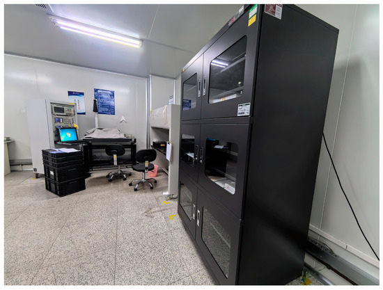 To ensure high-quality signal acquisition during experiments, the selected venue was the electromagnetic shielding room at the Shanghai Radio Equipment Research Institute, as shown in Figure 6. This room is fortified with electromagnetic shielding material, providing an isolation barrier complete with a grounding line for robust protection against external electrical fields, magnetic disturbances, and electrostatic interference. Furthermore, the facility boasts an integrated constant-temperature air conditioning system, securing a consistent experimental temperature of 26 °C.