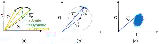 Based on Equations (5)–(7), we define the stationary component of the vibrating object, the moving component of the vibrating object, and the total signal in the IQ domain as the static vector , the dynamic vector , and combined vector , respectively.