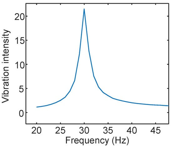 Vibration Intensity of a 30 Hz vibration object at different frequencies.