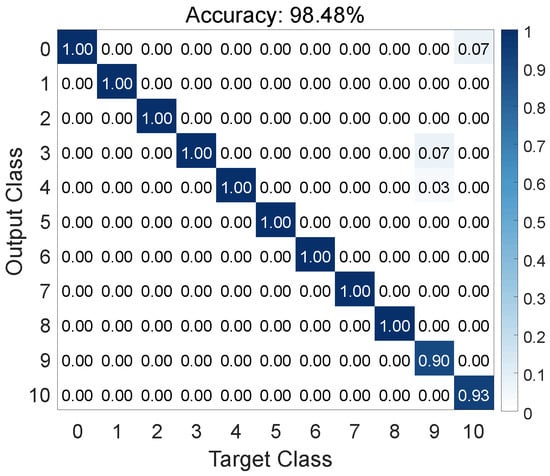 It is crucial to clarify that, when the absolute maximum value of the relaxation coefficient is 0, this essentially indicates the absence of a relaxation coefficient. Similarly, setting the constant weighting coefficient to 1 signifies the non-utilization of such a coefficient. Table 3 demonstrates that, without employing either the relaxation or constant weighting coefficients, the recognition accuracy is 96.67%. However, upon integrating both coefficients, the maximum achievable recognition accuracy increases to 98.48%. This table effectively validates the effectiveness of these two coefficients in our system.