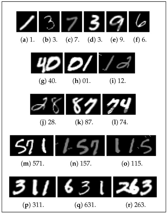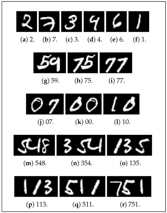 To enable it to read variable-length handwritten numbers written by different people, the model is trained on a large synthetic dataset designed to represent real-world examples. The custom-made training dataset consists of 600,000 images based on the comprehensive data available in the Modified National Institute of Standards and Technology (MNIST) dataset [36]. The MNIST dataset contains 60,000 images for training and 10,000 images for testing. This dataset consists of high-contrast, grayscale, 28 × 28 pixel images of single handwritten digits written by approximately 250 high school students and United States government employees. This large, high-quality dataset is closely representative of real-world handwritten numbers, making it an ideal data source for training and benchmarking HTR models; models trained on it tend to be generalizable to real-world data.