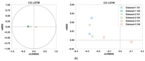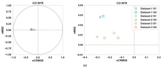 Figure 5. Target diagrams of (a) RFR and (b) LSTM for CO.
