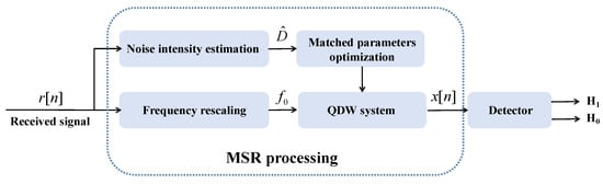 The MSR-based detection framwork is illustrated in Figure 4. The matched parameters’ optimization is carried out according to Equation (26), and computed to obtain with the classical Runge–Kutta algorithm. For the MSR-based detector, Equation (2) can be rewritten as follows: