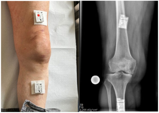 - Kayaalp, M.E.; Agres, A.N.; Reichmann, J.; Bashkuev, M.; Duda, G.N.; Becker, R. Validation of a Novel Device for the Knee Monitoring of Orthopaedic Patients. Sensors 2019, 19, 5193. [Google Scholar] [CrossRef] [PubMed]