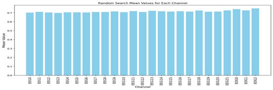 The selection of six channels will be discussed in Section 3.2. Figure 13 shows the average channel performance for each channel in dataset 1 when using the random search algorithm. As shown in Figure 13, all channels exhibit similar activation values, but the EOG channels, particularly EOG 0 and EOG 2, demonstrate slightly better performance than all EEG channels.