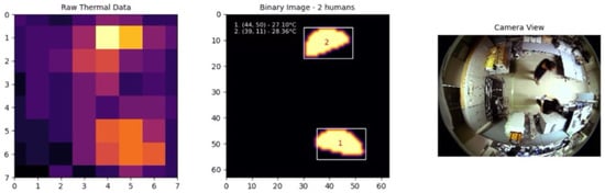 Additionally, recent work by [23] used a convolutional encoder-decoder network for human detection, achieving 98.43% accuracy with Adaptive Boosting (AdaBoost) across different sensor configurations. Despite these advancements, other challenges remain, particularly in distinguishing closely positioned individuals. Ref. [24] tackled this issue by applying connected component labeling and blob filtering to thermal data, accurately segmenting densely standing individuals. The method, though effective, still relies heavily on the sensor layout and may face limitations in highly dynamic environments.