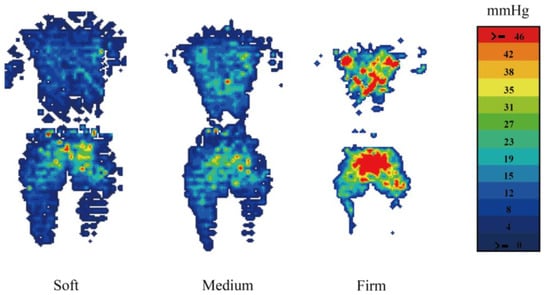 Pressure map on mattresses with different firmness levels of one subject.