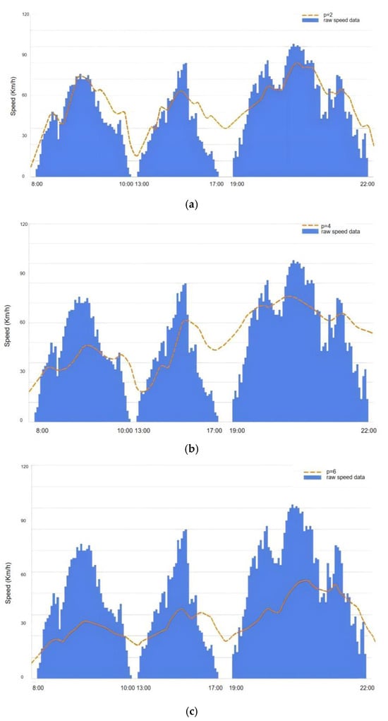 When comes to 4, the position of the fold line drops. The gap between encrypted data and raw data is reduced, meaning that the data are further encrypted on top of the original one. Data generated while the vehicle is in motion during the period of 8 a.m.–10 a.m., 1 p.m.–5 p.m., and 7 p.m.–10 p.m. can be adequately protected. And finally, the value p equals to 6 and the line drops even lower. Likewise, data from the three intervals depicted receive better protection in cases of leakage. It should be flexibly adjusted according to specific application scenarios to comply with GDPR’s requirements for privacy and security.