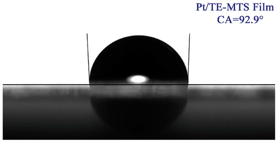 The contact angle of the Pt/TE-MTS film.
