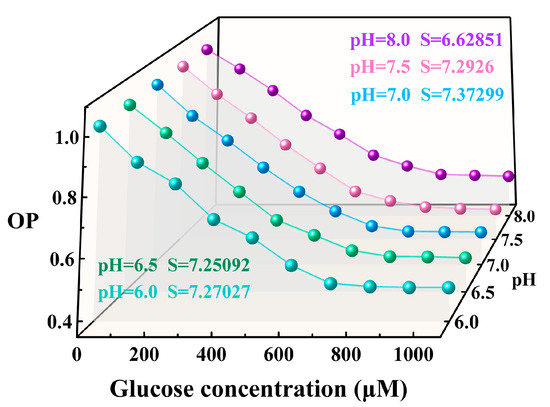OP values dependence on glucose concentration in the pH range of 6–8.