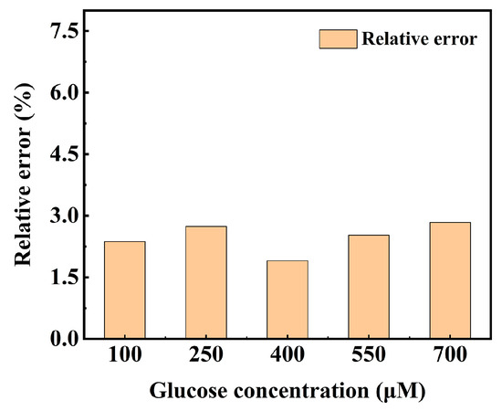 Relative errors for the samples with glucose concentrations of 100, 250, 400, 550, and 700 μM.