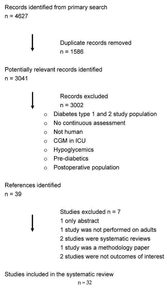 Studies were included if they evaluated the impact of CGM on cardiovascular outcomes or related risk factors in non-diabetic, adult individuals. Studies pertaining to pregnant women or hypoglycemia, were excluded. We also excluded studies looking at postoperative cases and patients in the intensive care ward as well as reviews, meta-analyses, comments, and editorials.