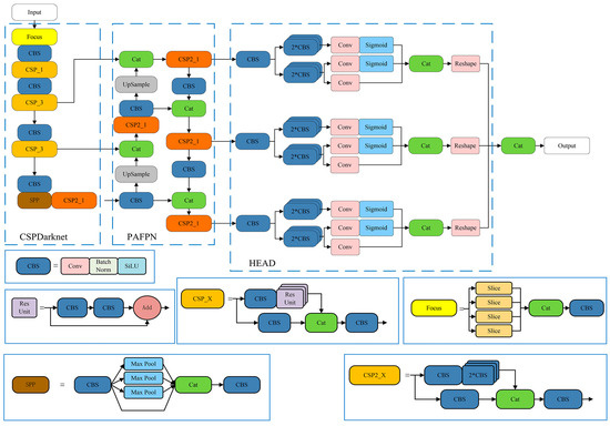 The YOLO family of algorithms has achieved widespread acclaim in the field of target detection due to its remarkable performance. It is worth noting that YOLOX [33] introduces several significant modifications compared to its predecessors, enhancing its object detection capabilities. The architecture of the algorithm is divided into three main components: the backbone, the neck, and the prediction head. The structural diagram is presented in Figure 1.
