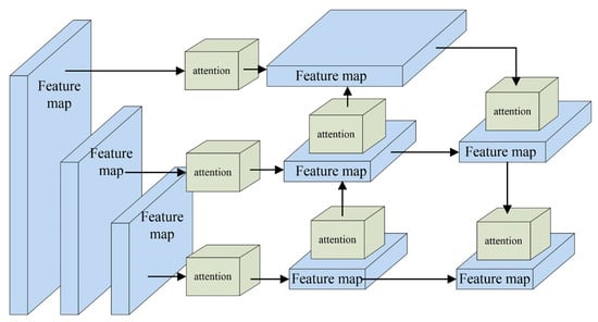 Foggy weather conditions reduce the contrast and brightness of images, leading to blurred edges and indistinct texture features, complicating the feature extraction process for networks. To address this issue, this study introduces an attention mechanism module to the YOLOX network. This feature extraction network utilizes the attention mechanism to learn the significance of each feature channel or spatial region, thereby enhancing its feature extraction capabilities and improving its adaptability to foggy environments. The attention mechanism module is strategically embedded at seven junctures throughout the network: three on the effective feature layer at the output of the backbone feature extraction network and four on the effective feature layer post-sampling in the enhanced feature extraction network. The placement of the attention mechanism module is illustrated in Figure 2.