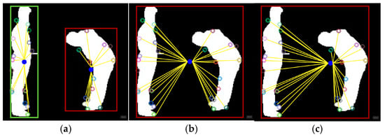 where returns the magnitude of the gradient vector, returns the angle of the gradient vector, and is an indicator function that returns 1 if the angle of the gradient vector lies within the angle range of l-th bin; otherwise, 0. A polar bin is used as a reference point, where each bin has the same size of angle range. The illustration below showcases the point-based features. Figure 8 is graphical representation of gradient vector of individual, local and global centers respectively.