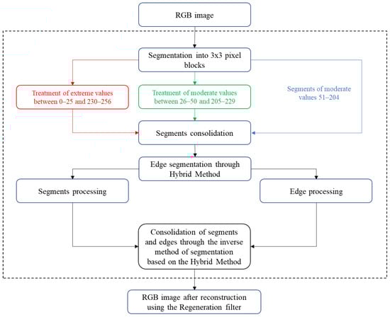 The code for the proposed solution, including all relevant scripts, implemented in the R programming language, is publicly available for review and replication. It can be accessed and downloaded from the following GitHub repository: https://github.com/RatkoIV/RegenerationFilter (accessed on 10 December 2024). This repository contains detailed documentation, example datasets, and instructions for running the code, ensuring that the findings reported in this paper can be fully replicated and verified. Additionally, the image database used in this study can be accessed at https://www.imageprocessingplace.com/root_files_V3/image_databases.htm (accessed on 10 December 2024), providing the original images required for thorough testing and validation of the proposed methods.