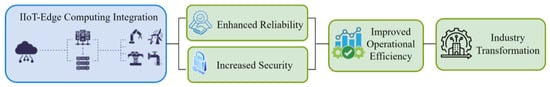 The lack of established protocols and the range of technologies contribute to the incompatibility of devices in the industrial IIoT, which has a significant impact on real-time data gathering and machine-to-machine communication in Industry 4.0. Resolving these challenges is essential for enhancing productivity and minimizing expenses. Various degrees of compatibility, along with advanced technologies like blockchain and 5G, can enhance data exchange and device integration in the IIoT []. In recent years, the IIoT has become an essential element of intelligent systems; yet, apprehensions over privacy and data security continue to arise due to the management of significant volumes of sensitive information. Conventional cloud computing is inadequate in managing latency and bandwidth, rendering edge computing a more efficient alternative []. The IIoT encompasses many devices and sensors that communicate data inside a sophisticated network, necessitating the use of contemporary edge computing technologies. Multiple facets of edge computing are examined, encompassing security, latency, resource utilization, and energy efficiency [].
