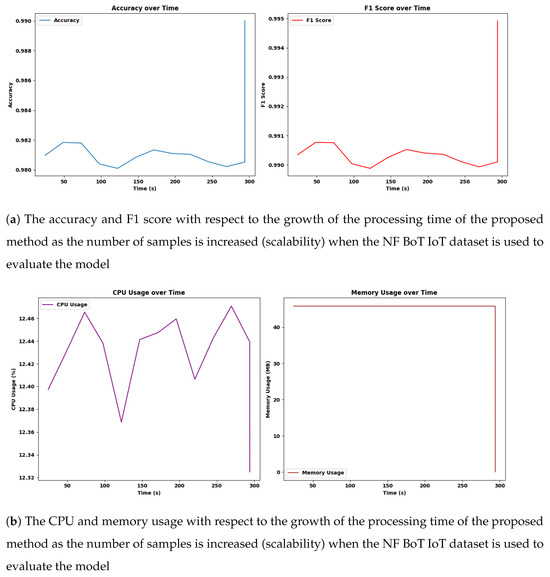 Scalability analysis reveals Adaptive SAMKNN’s capability to manage large-scale data effectively, making it ideal for IoT environments with continuously growing data streams. The classifier maintains high accuracy despite increasing sample sizes, demonstrating stability and reliability in monitoring extensive datasets without performance degradation. Its low CPU and memory usage emphasize its efficiency, which is crucial for resource-constrained IoT settings where excessive resource consumption can impede practical deployment. Although processing time gradually increases with larger datasets, Adaptive SAMKNN remains responsive within acceptable limits, preserving its real-time applicability. These results confirm Adaptive SAMKNN’s ability to scale efficiently, adapting to high-throughput data while maintaining accuracy and resource efficiency. Future work could explore further optimizations in processing speed to handle even larger data volumes, enhancing its applicability across broader IoT and cybersecurity applications.