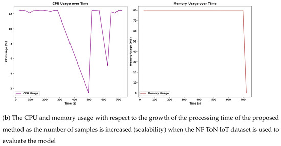 Table 15 presents a comparative analysis of resource utilization between SAMKNN and Adaptive SAMKNN across the NF-BoT-IoT, NF-ToN-IoT, and NF-CSE-CIC-IDS 2018 datasets. The Adaptive SAMKNN consistently demonstrates a lower mean CPU usage, memory consumption, and processing time compared to the standard SAMKNN. For instance, in the NF-BoT-IoT dataset, Adaptive SAMKNN achieves a mean CPU usage of 86.51% and memory consumption of 3.20 KB, whereas SAMKNN requires 94.51% CPU usage and 76.80 KB memory. Across all datasets, Adaptive SAMKNN maintains a processing time of 0.07 s, slightly faster than SAMKNN’s 0.10 s. These findings emphasize Adaptive SAMKNN’s computational and memory resource efficiency, making it more suitable for real-time applications in resource-constrained environments like IoT networks. The reduced resource demands of Adaptive SAMKNN, without sacrificing detection accuracy, underscore its advantage for deployment in practical, high-frequency data processing scenarios.
