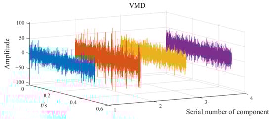 Unlike the adaptive signal decomposition methods of the sift type, such as EMD, LMD, and LCD, the variational mode decomposition (VMD) [19] method calculates the center frequency and bandwidth constraints by solving a variational problem in the frequency domain, which provides greater precision in decomposition capability. Although VMD suppresses mode mixing better than adaptive signal decomposition methods of the sift type, it lacks adaptivity, and the decomposition capability is controlled by the number of predicted modes and the penalty factor. Improvements for VMD primarily focused on optimizing parameters and cannot fully resolve the issue of mode mixing [20,21].