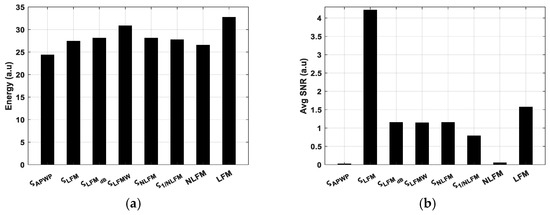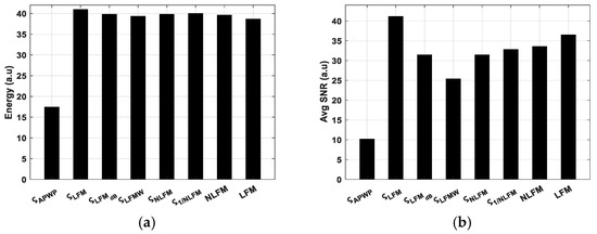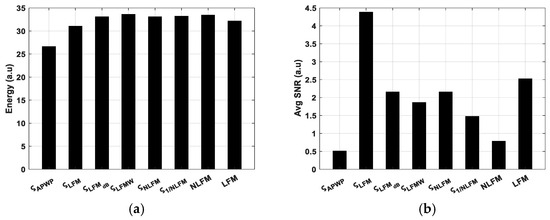 The APWP signal obtained from Expression (13) (where ς represents the optimized SNR) tends to distribute energy toward the edges of the passband; however, linear frequency modulation (LFM) of the signal instead of NLFM, which tends to have higher energy, could also be explored as it compensates for the higher energy toward the edges, which might provide a better optimized signal.