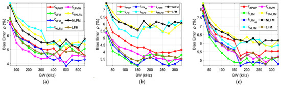 When the bandwidth was narrow, the error rates were high. Once the bandwidth covered the peak and was midway to the valley, the errors became lower, and further bandwidth increases produced less improvement. The best results were obtained for ςLFMdB, while NLFM performed the worst.