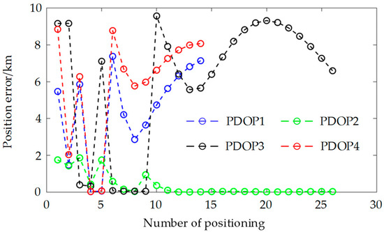 (2) When more than three satellites are visible, it is crucial to consider not only those with high elevation angles and significant changes in orbital position but also the PDOP values of various satellite permutations.