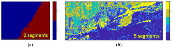 Segmentation maps used for (a) SIC datacube and (b) RIT datacube. The labels’ indexes correspond to the local covariances used in the sequel, that is, corresponds to segment #1, to segment #2, etc.