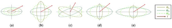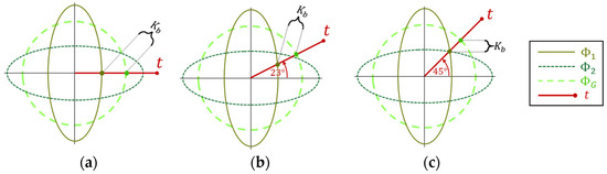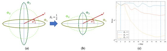 Thereafter, we gradually reduced the major eigenvector of and rechecked the rotation impact (Figure 14b). The two lower graphs in Figure 14c exhibit a decline as they approach 90°, in accordance with the decreasing factor. This decline happens due to the reduction in the ratio of intersections as explained in Section 2.3.1. This reveals that since such asymmetries are common, it is likely to find the optimal target direction close to one of the most dominant eigenvectors.