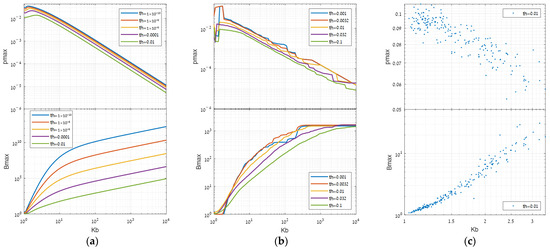 The results exhibit behavior consistent with the previous findings: as rises, drops, and grows proportionally. The progression of follows an approximately quadratic rate in this specific case, as is less than 10, and as we chose a threshold () of 0.01.