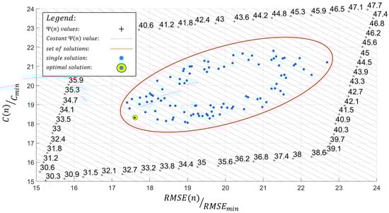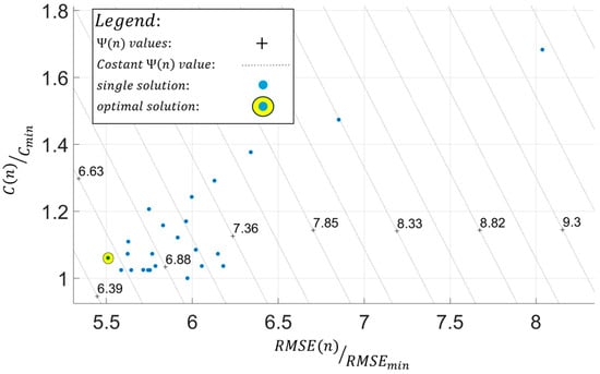 Once all terms of the multi-objective function have been defined, the optimal configuration of the proposed FOP can be identified graphically in Figure 16 as the solution that minimizes this function.