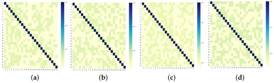 Heatmap representation of the self-adaptive matrix for (a) PeMS03, (b) PeMS04, (c) PeMS07, and (d) PeMS08.