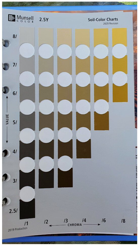 - Thompson, J.A.; Pollio, A.R.; Turk, P.J. Comparison of Munsell soil color charts and the GLOBE soil color book. Soil Sci. Soc. Am. J. 2013, 77, 2089–2093. [Google Scholar] [CrossRef]