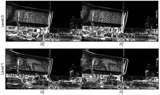 As mentioned in Section 3.3, when sampling the difference map (), we set different rates depending on the level. To evaluate this effect, we extract and compare the difference maps from the trained model according to the levels. Figure 8 shows the magnified difference maps at each level. When comparing levels 0 and 1, there is a tendency for the area indicated in the difference map to decrease and become more detailed as the level increases. This is because, in the process of progressively refining the flow, the range of damage decreases as the level rises. At the same time, the sampling rate is learned to decrease, leading to a concentration of the difference map distribution around specific pixels. This indicates that the proposed method reduces the computational load required for higher levels, which correspond to higher resolutions. Therefore, we can confirm that the proposed sampling method is effective for high-resolution VFI.