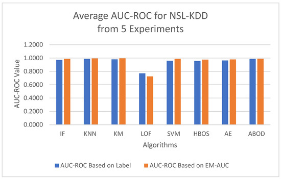 Average AUC-ROC metrics based on five experiments for NSL-KDD dataset.