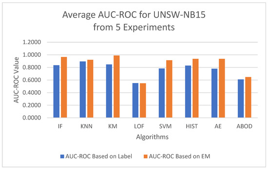 Both the NSL-KDD dataset and the UNSW-NB15 dataset were generated using simulated labeling in an artificial network environment. While simulated labeling methods efficiently produce a significant amount of labeled network traffic, the accuracy of these labels is not guaranteed. The performance of a model can be either underestimated or overestimated if an inaccurate label is used. As observed in this study, model performance based on the labels in the NSL-KDD dataset is better than that based on the labels in the UNSW-NB15 dataset, indicating that the quality of the NSL-KDD dataset is higher. The NSL-KDD dataset is considered an improved version of the original KDD99 dataset, addressing several inherent issues, such as mislabeling and the poor definition of certain attack types [50]. In contrast, there is no improved version of the UNSW-NB15 dataset that incorporates additional quality controls. As a result, discrepancies between model performance based on the labels and those derived from the EM-AUC algorithm are more pronounced in the UNSW-NB15 dataset compared to the NSL-KDD.